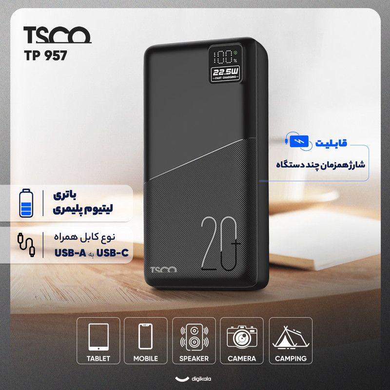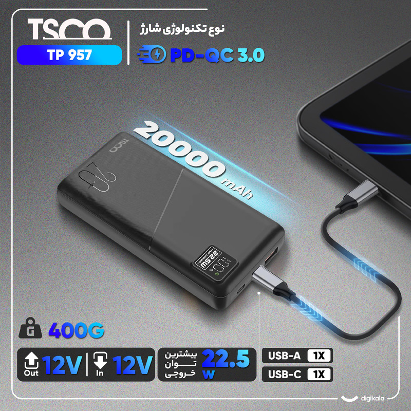 پاوربانک 22.5 وات تسکو مدل TP 957 ظرفیت 20000 میلی آمپر ساعت